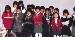 | Primary school children demonstrate musical achievements at New Year's party. | Junior high school graduates each recieve a memento from the director. |